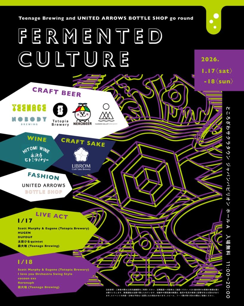 Fermented Culture 2026presented by Teenage Brewing 時間|11:00〜20:00 会場|ところざわサクラタウン 入場|無料 CRAFT BEER •